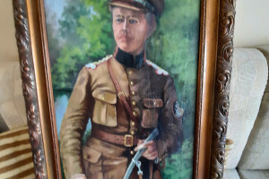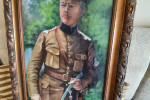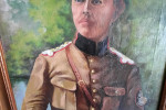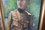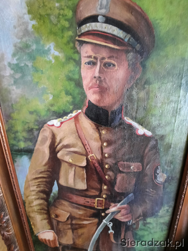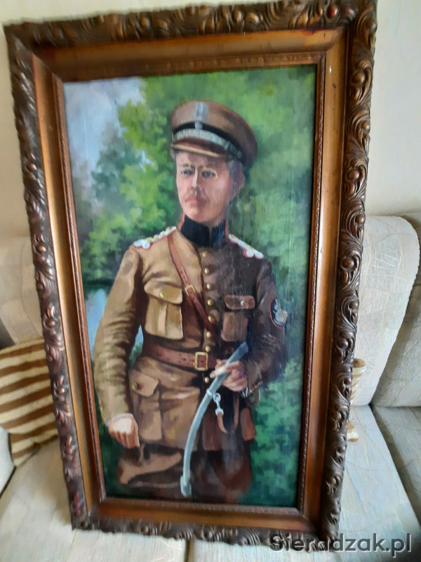 Obraz - olej na płótnie. Oficer w mundurze z lat 1918 - 1920. Ozdobna stara rama. Niesygnowany. Wymiary 120 x 70 cm.
