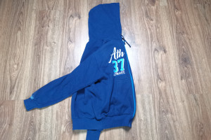 Witam, mam do sprzedania bluzę sportową z bawełny dokładnie 80% w kolorze niebieskim na wzrost 158 cm dla 13,14-latka w stanie bardzo dobrym cena do negocjacji proszę pisać pozdrawiam i zapraszam również na inne moje aukcje.