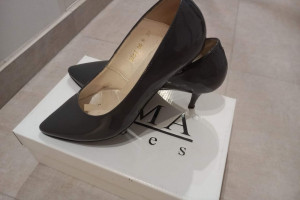 Sprzedam szpilki szare (grafit), lakierowane, firma JUMA.
