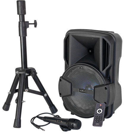 PRZENOŚNY ZESTAW NAGŁOŚNIENIOWY Z MIKROFONEM DO RĘKI I PODŚWIETLENIEM LED.
