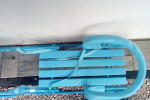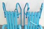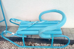 mam do zaoferowania dwie pary sanek dla dziecka widocznych na zdjęciach. Sanki są metalowe z oparciem, w całości w ładnym kolorze niebieskim.