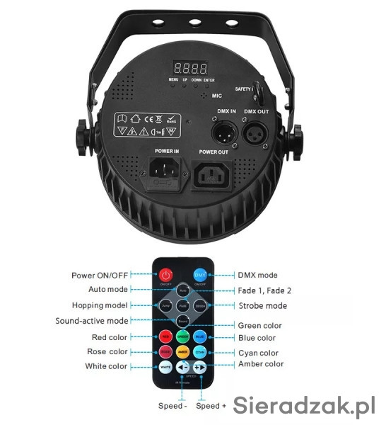 REFLEKTOR MOCNY PAR LED NA STATYWIE 30 x 3W RGBWA+UV DMX + PILOT