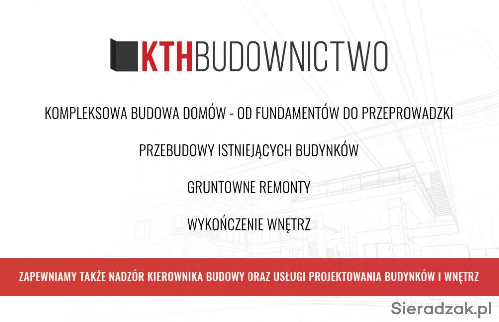 Firma ogólnobudowlana KTH Budownictwo o ugruntowanej pozycji na rynku zrealizuje budowę domu od podstaw pod klucz. Zajmujemy się budową domów na każdym etapie tego skomplikowanego procesu: