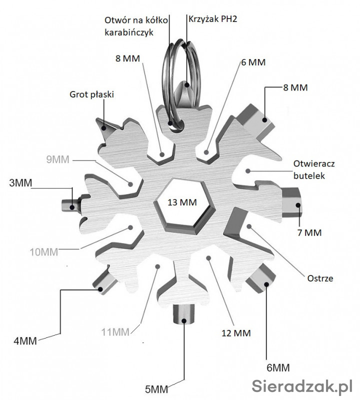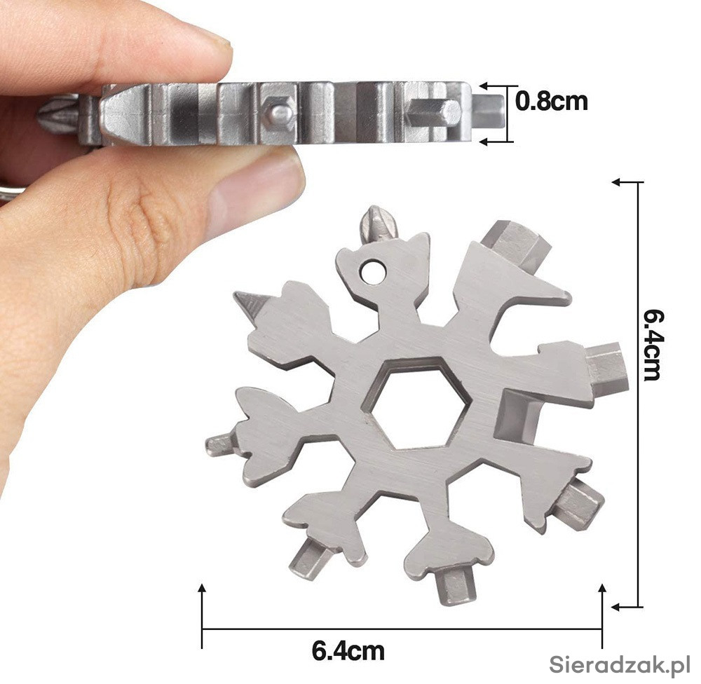 Sprzedam narzędzie wielofunkcyjne ze stali nierdzewnej 18 w 1. Jest to unikalny wzór płatka śniegu.