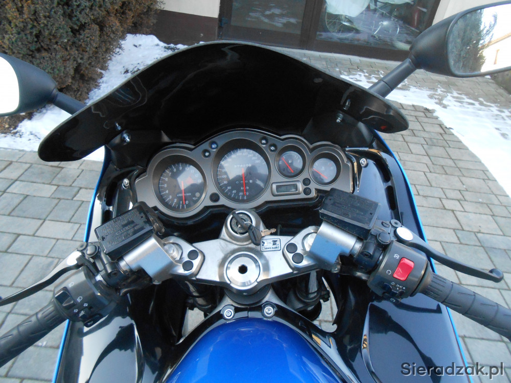 Rok produkcji 2002, przebieg 41 tys km,sprowadzony , zarejestrowamy i ubezpieczony, oczywiście na mnie. Motocykl bezwypadkowy, malowane były boczne owiewki ponieważ niemiecki fachowiec podmalował rysy speyem, owiewki nie klejone, można zdemontować i sprawdzić. Opony w stanie dobrym , choć że względu na wiek można by było wymienić, po czyszczeniu i synchronizacji gaźników, nowy akumulator na gwarancji, nowe świece irydy. Olej wymieniany co roku mimo małego przebiegu, na ten sezon nie był jeszcze wymieniony , olej z wymianą i filtrem gratis.. Motocykl po akcji serwisowej w Niemczech, wymianą wałków rozrządu, książka serwisowa. Motocykl zarejestrowany i ubezpieczony.