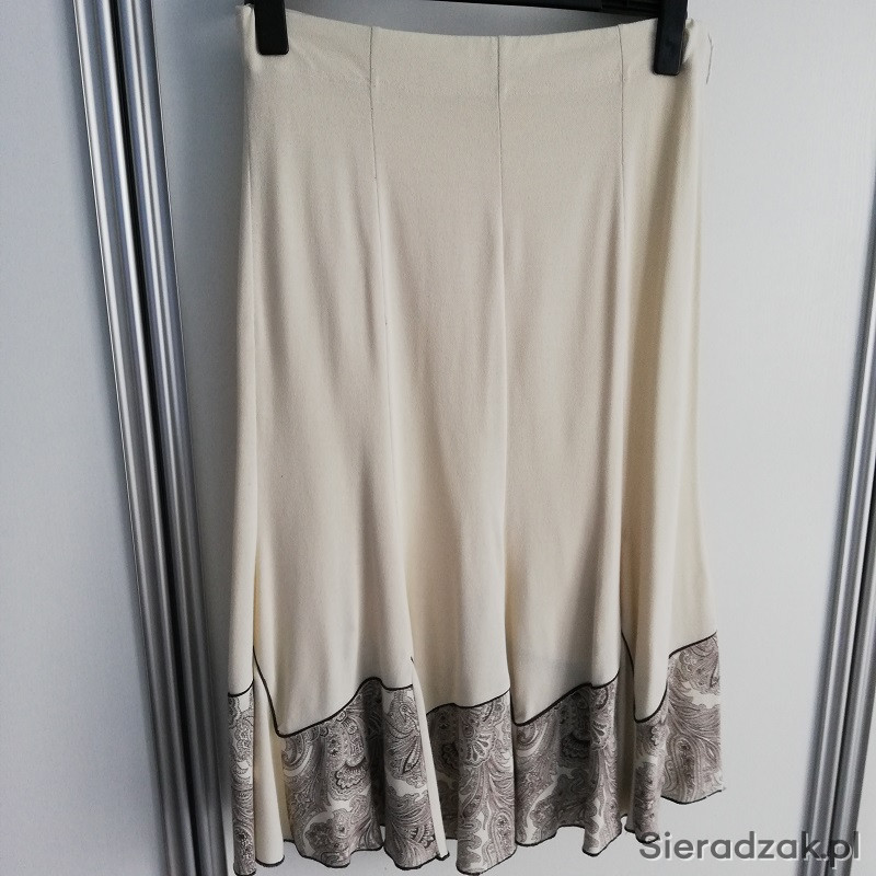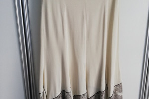 Bardzo ładna spódniczka w kolorze kremowym, zdobiona na dole w kolorze brązowym.