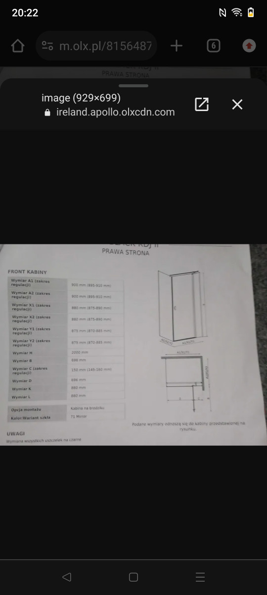 Sprzedam nową ściankę do kabiny Radaway NesBlack kdj2.