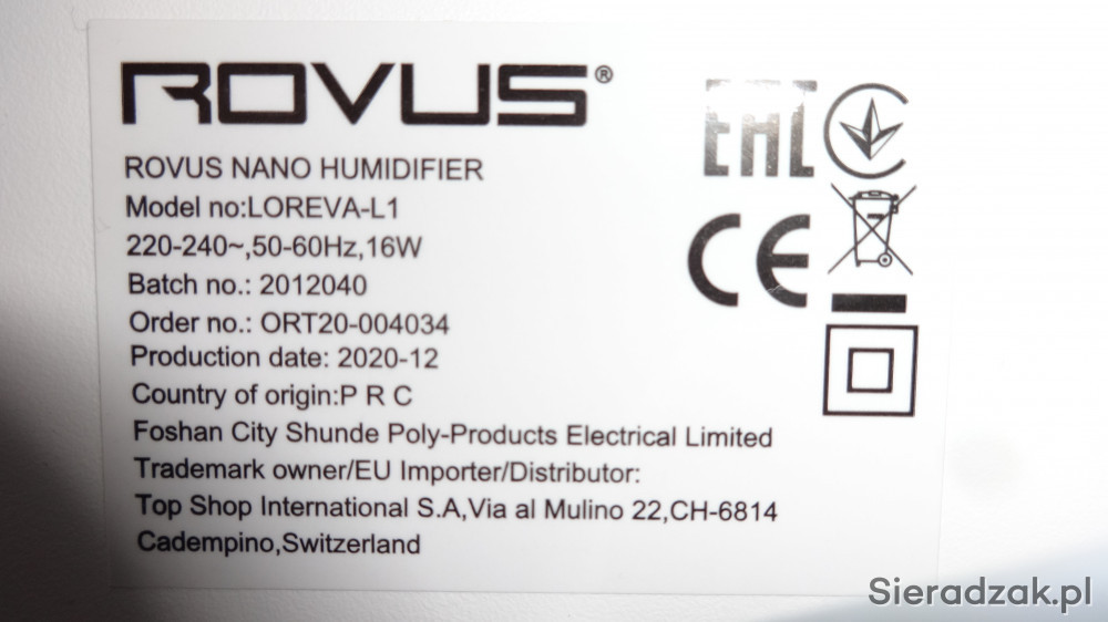 Sprzedam nowy (nieużywany) nawilżacz powietrza ROVUS NANO HUMIDIFIER.