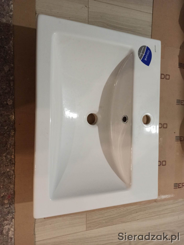 Sprzedam mało używaną umywalkę ( praktycznie została powieszona po czym zdjęta, inna koncepcja) Wymiary: 60 x 45 cm, wysokość 16.5 cm Waga ok. 14 kg