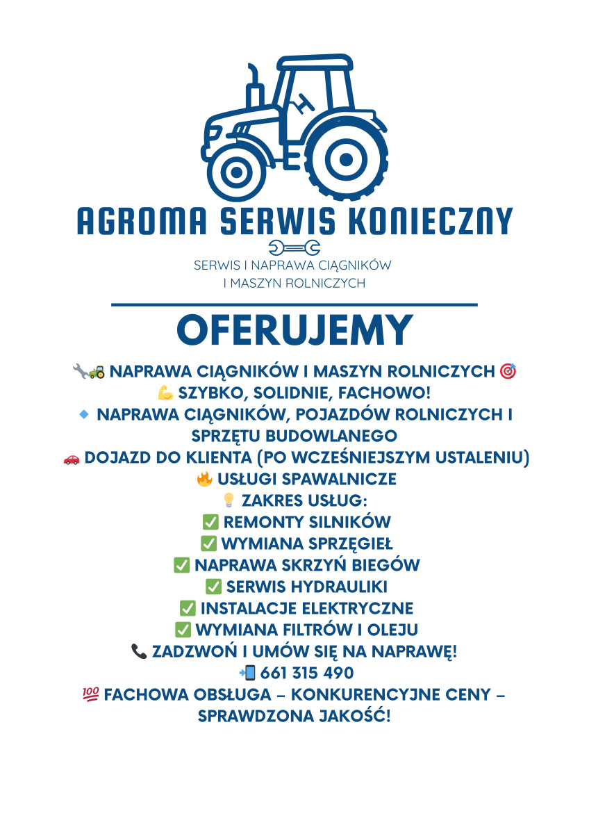 Witam. Agroma serwis Konieczny zaprasza  Więcej pod numerem telefonu 661315490