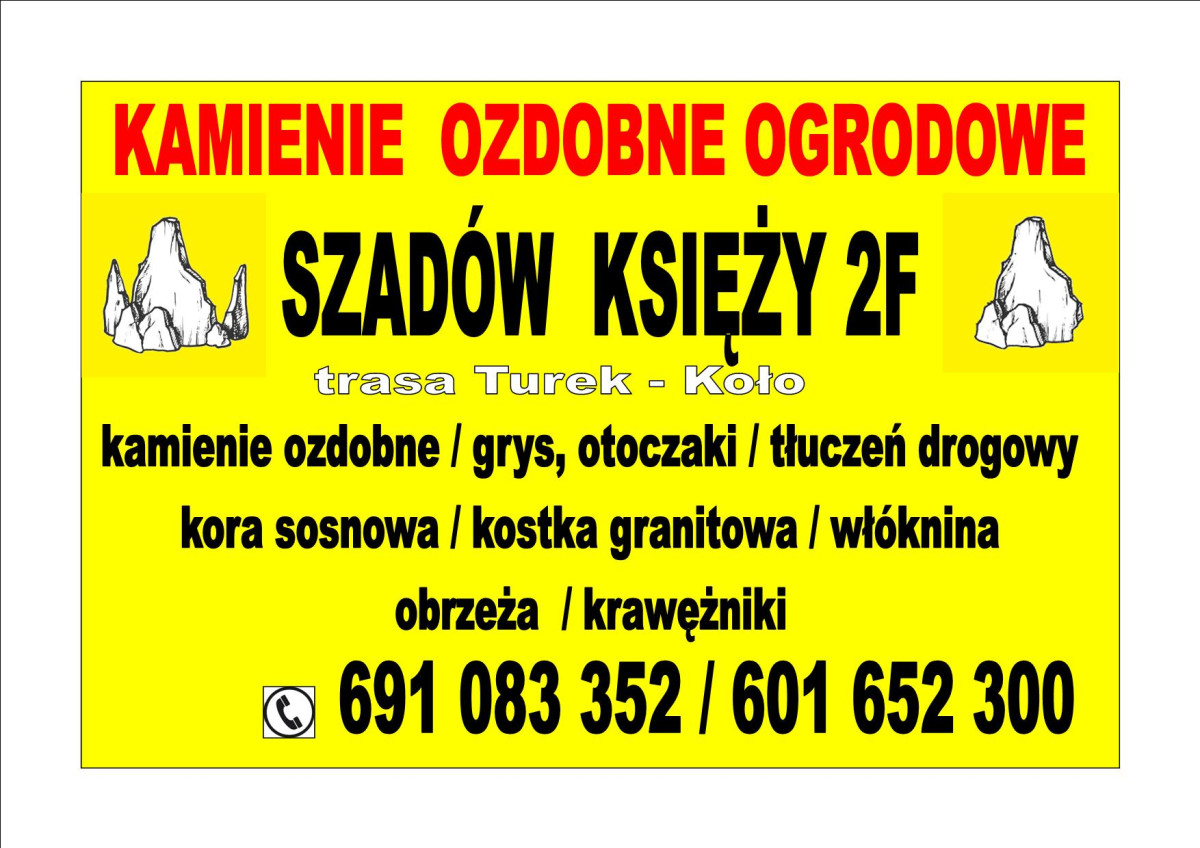 Produkcja betonowego krawężnika ozdobnego imitujące kostkę granitową, (obrzeże) i płytki chodnikowej betonowej oraz elementy ozdobne żabki, jaszczurki, drewno betonowe oraz donice z betonu architektonicznego. Sprzedam korę sosnową. Sprzedaż kamieni ozdobnych ogrodowych, otoczaki, łupki, głazy, grys, kostka granitowa, oporniki. tel 691-083-352 lub 601-652-300