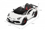 Pojazd na akumulator Lamborghini jest licencyjną wersją niezwykłego supersamochodu, który dostarczy najmłodszym niezapomnianych przeżyć. Dynamiczna linia nadwozia, charakterystyczne światła oraz otwierane do góry drzwi to tylko kilka elementów, które oddają wyjątkowość Lamborghini. Wnętrze zostało wykonane z dbałością o detale. Fotel z wysokiej jakości ekoskóry zwieńcza złote logo kultowej marki, a na kierownicy znajdują się przyciski klaksonu i przełączania melodii. Dodatkowo z tyłu kryje się schowek na zabawki.