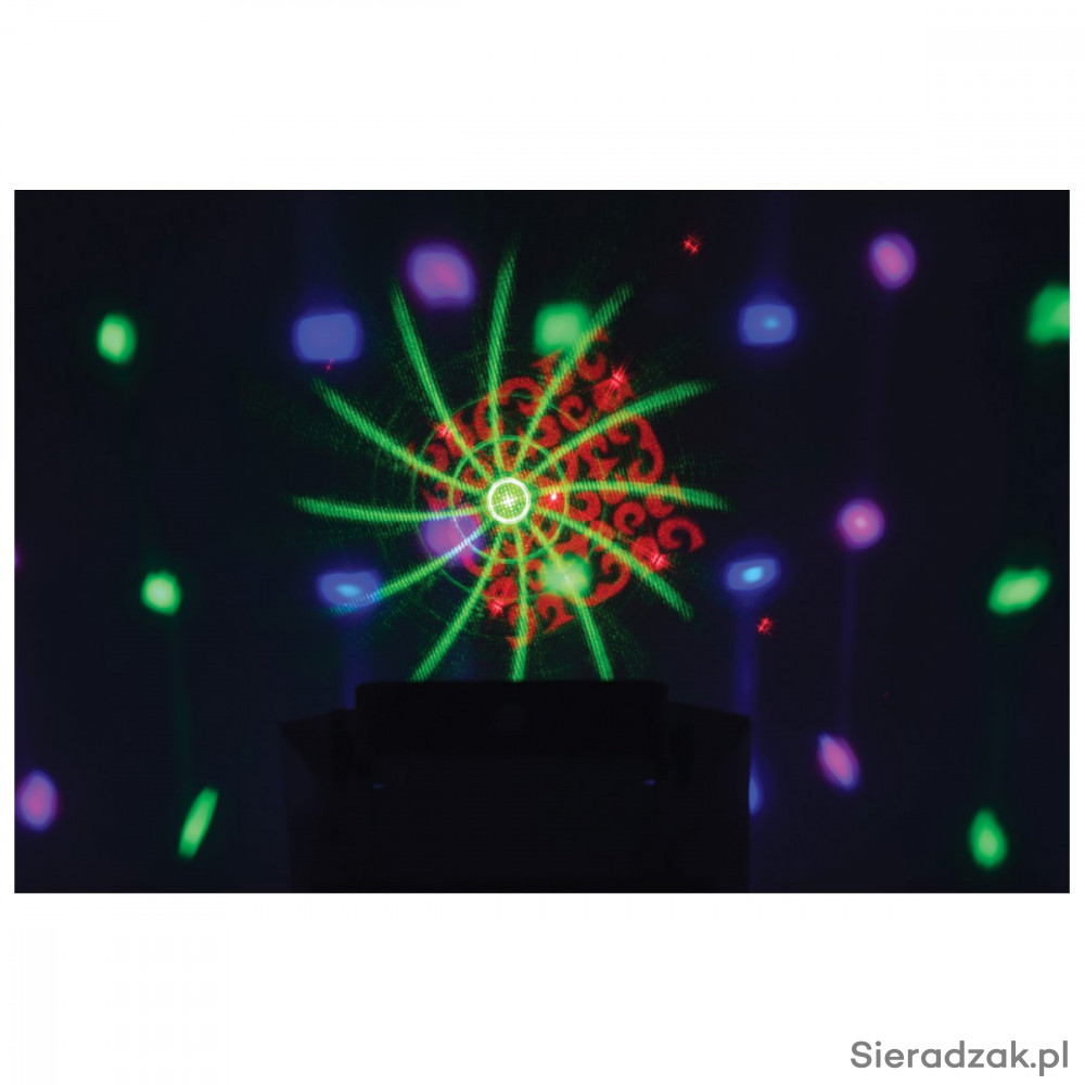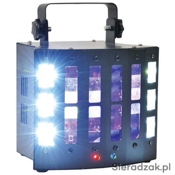 Połączenie 4-efektów w jednej obudowie: Laser+Stroboskop+Derby+UV. Dzięki temu posiada duże możliwości pracy w każdych warunkach. Każdy użytkownik będzie z pewnością zadowolony mając możliwość użycia wszystkich efektów na każdej imprezie.