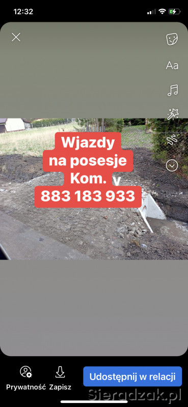 Wykonamy kompleksowo - materiał + robocizna wjazdy na posesje z rurą przejazdową oraz ściankami bocznymi kom. 883 183 933