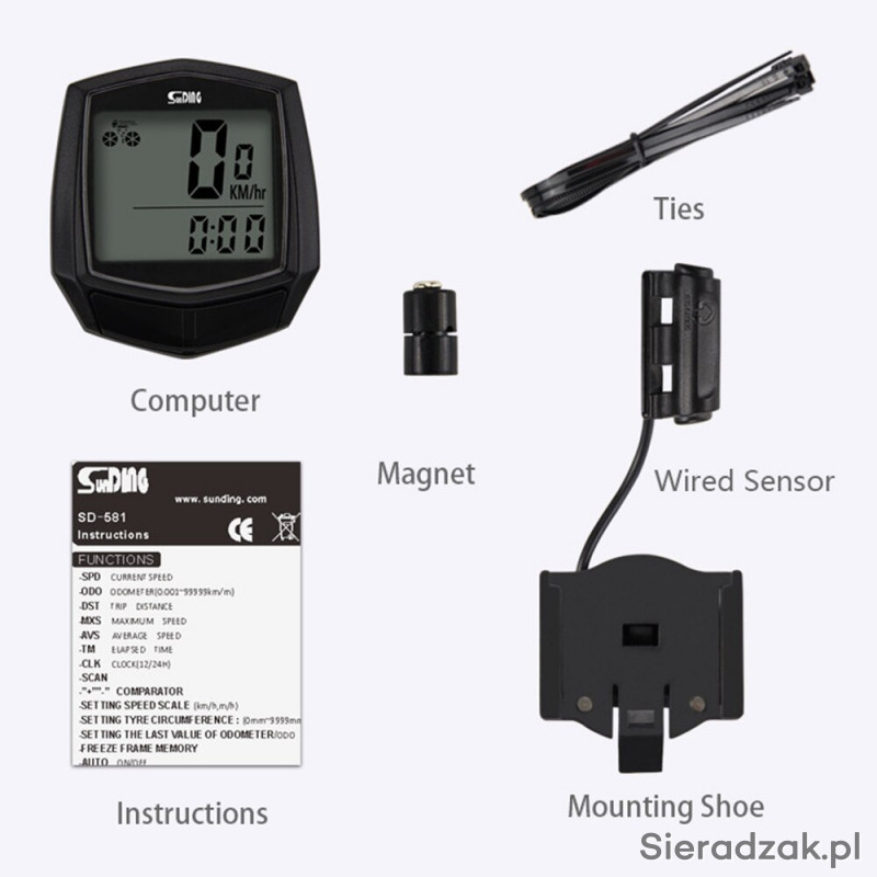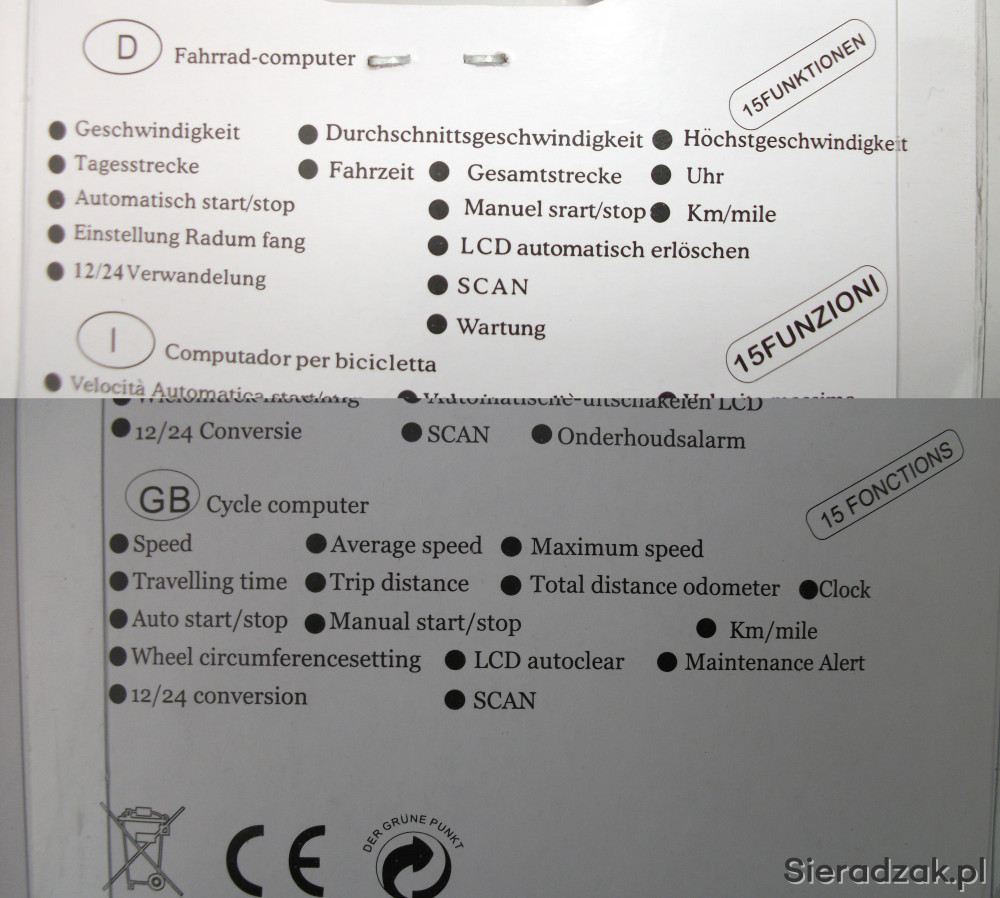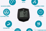 Posiada aż 15 różnych funkcji, które są wyświetlane na bieżąco i zapewniają dużą pomoc podczas jazdy na rowerze, takie jak prędkość, przebyty dystans, czas jazdy, porównanie aktualnej prędkości do średniej, czas wyjazdu, prędkość średnia, stoper, prędkość maksymalna, zegar i wiele innych.