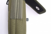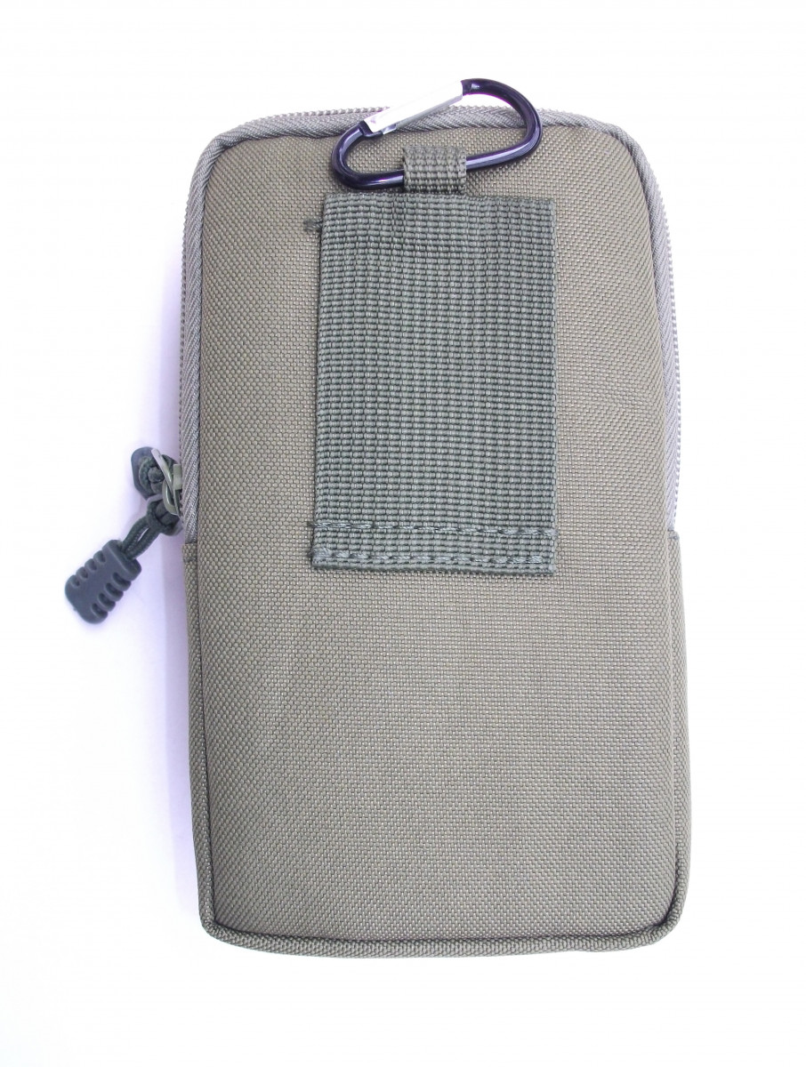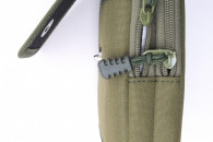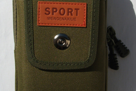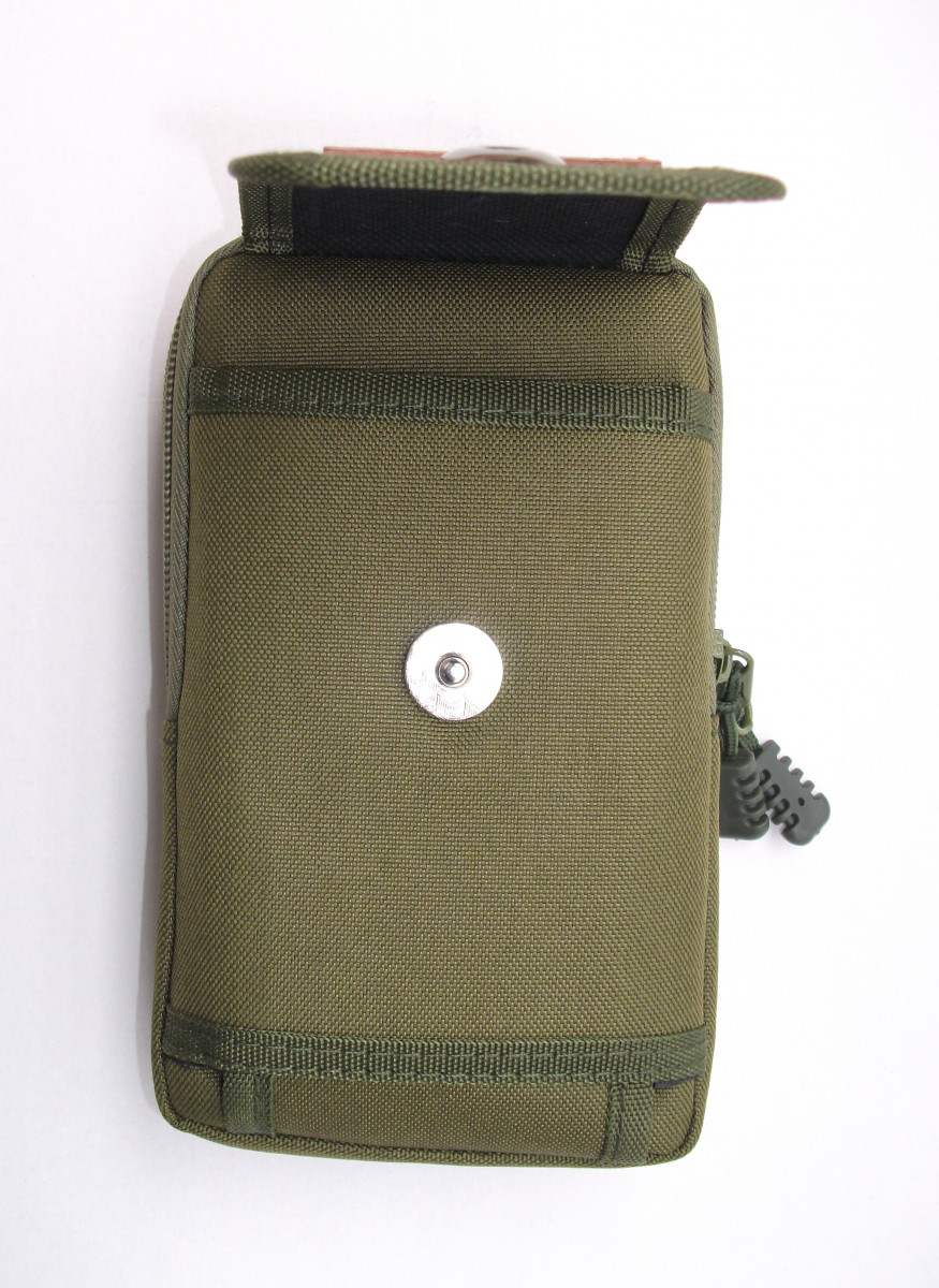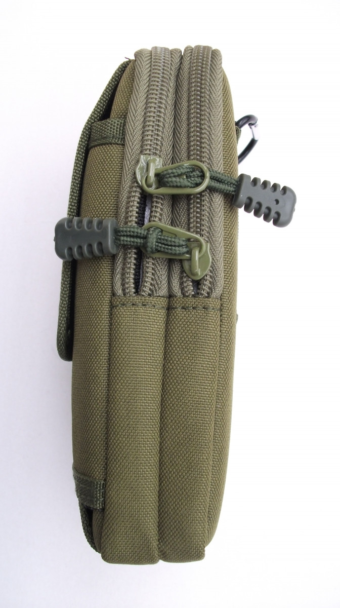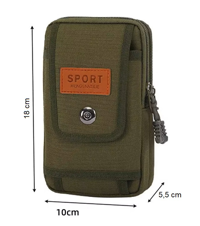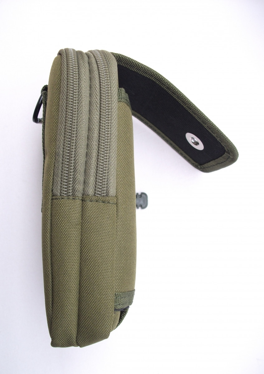 Przedmiotem oferty jest zielona torba, wodoodporna. Posiada 3 kieszenie, szeroką szlufkę na pasek spodni i karabińczyk.