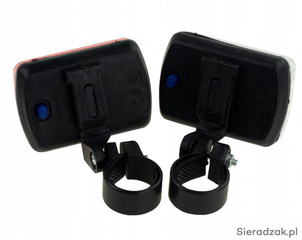 Uniwersalny montaż za pomocą obejm na kierownicę i sztycę, Lampki są wypinane bez konieczności demontażu uchwytów.