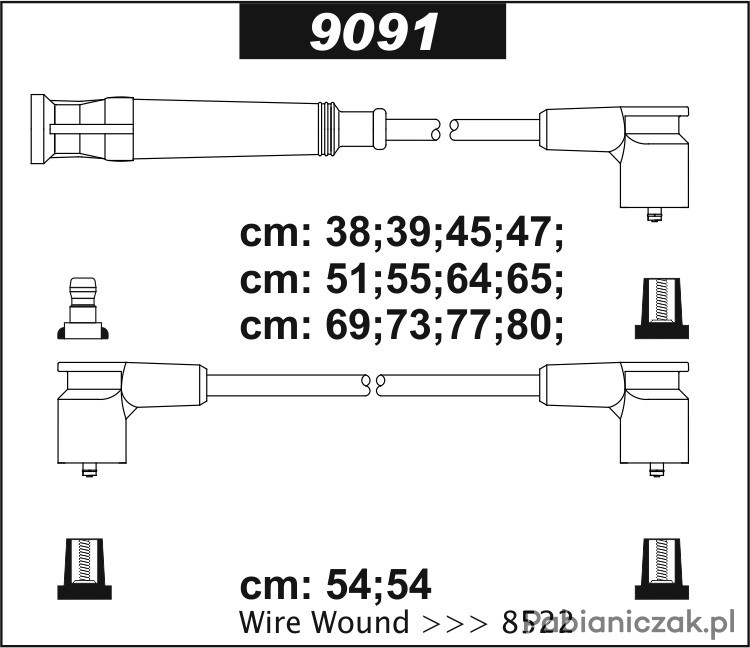 Zestaw Przewodów zapłonowych Sentech 9091 (ZAMIENNIK 8522) BMW 750i 30KV 5.0