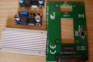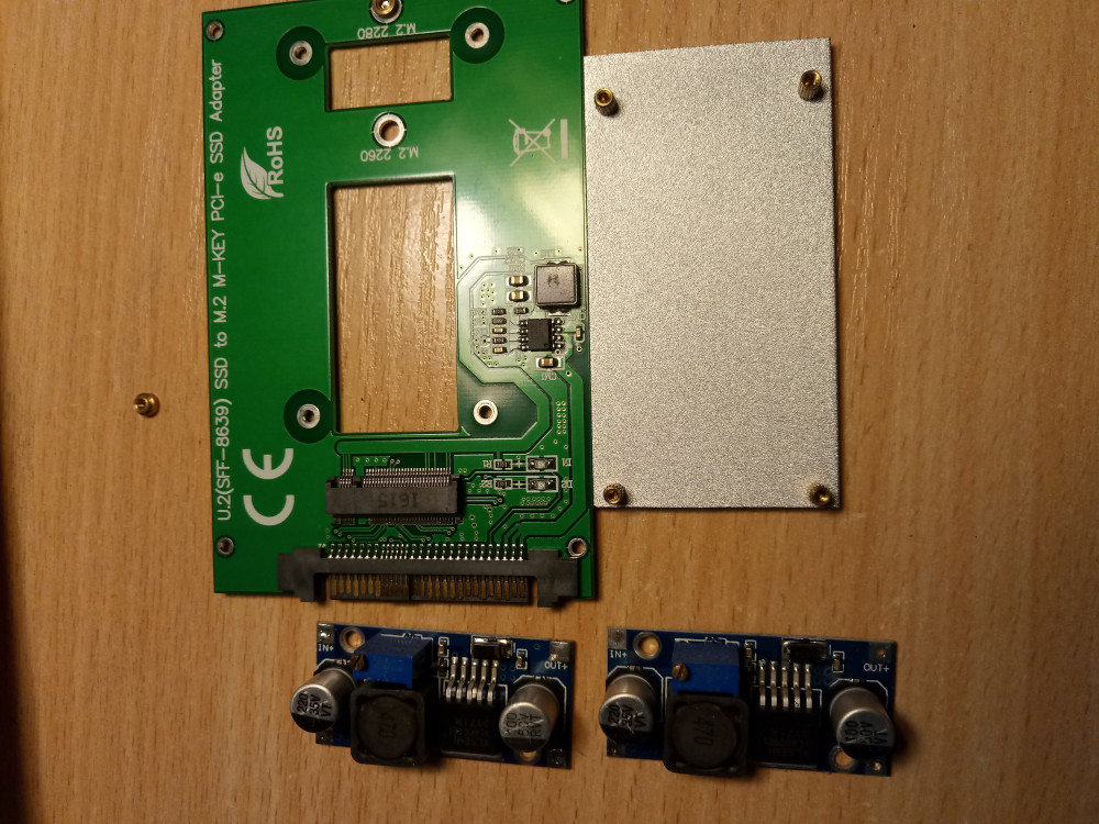Płytki elektroniczne. Znalazły się w zakupie większej przesyłki. Adapter do dysku ssd M2 M-KEY PCI i dwie małe to przetwornice dc