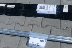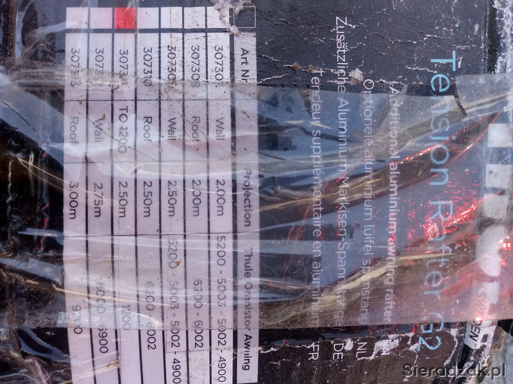 Belka rozpórka-rafter aluminiowa naprężająca markizy firmy Thule 1200 przy kamperze, przyczepie kampingowej. Belki składane z amortyzującą sprężyną. Polecam!!!