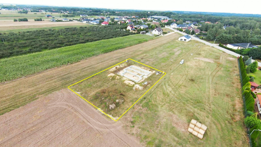 Sieradzkie Biuro Nieruchomości oferuje na sprzedaż działkę budowlaną z fundamentem położoną w miejscowości Chojne przy ul. Malinowej.