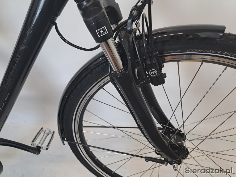 duża rama aluminium 26" 65cm,przerzutka shimano nexus 7-biegowa w tylnej piaście,amortyzator sr suntour,hamulce hydrauliczne magura hs 11,dynamo shimano nexus w przednim kole,oświetlenie led axa cl 35,wspornik kierownicy regulowany,siodełko selle royal viaggio,opony continental contact plus.
