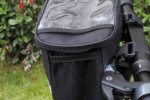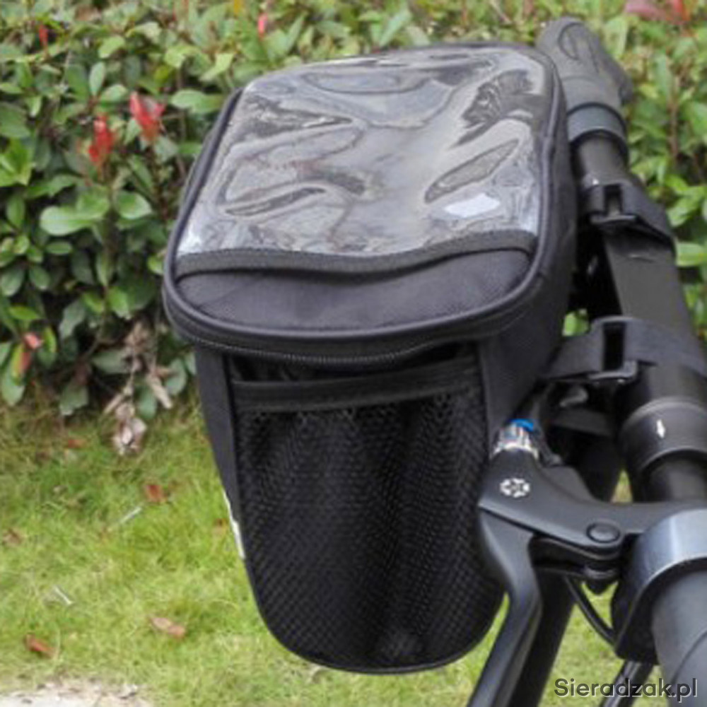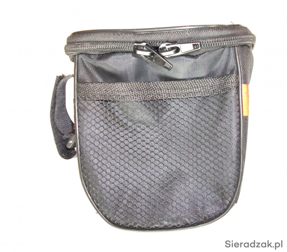 Ta bardzo lekka torebka posiada 3 paski montażowe na rzepy i zamek błyskawiczny na 2 suwaki. Na obu bokach posiada kieszenie siatkowe, a na górze przezroczystą kieszeń na telefon.