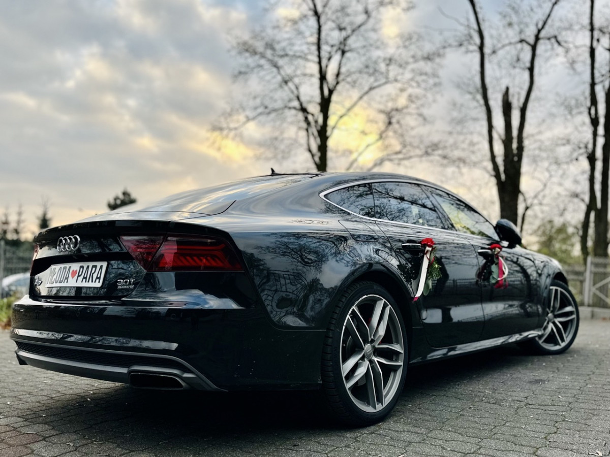 Oferowany pojazd to Audi A7 o mocy 410KM, 20" stylowe felgi, Pakiet S-Line. Komfortowe, wygodne, w najbogatszej wersji wyposażenia. Wnętrze wykończone drewnem i alcantarą, oświetlenie zewnętrzne LED i wewnętrzne ambient Lightning LED, cztero strefową klimatyzację z oddzielną regulacją dla tylnych siedzeń, Szyberdach, przyciemniane szyby, skórzane podgrzewane i wentylowane siedzenia, rozbudowany system nagłośnienia audio, przestronne wnętrze i duży bagażnik gwarantuje komfort młodej parze.