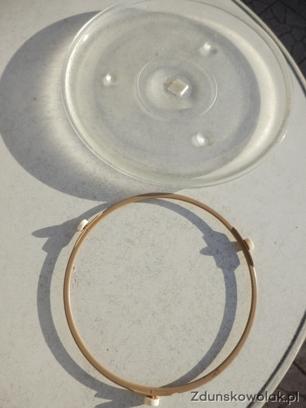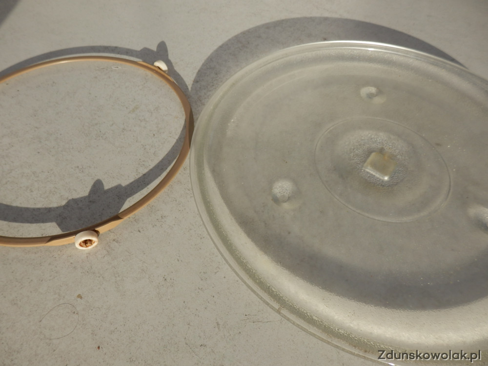 Do sprzedania mam szklany talerz o średnicy 32 cm z obrotowym wózkiem do mikrofalówki. Używane ale sprawne.Polecam.