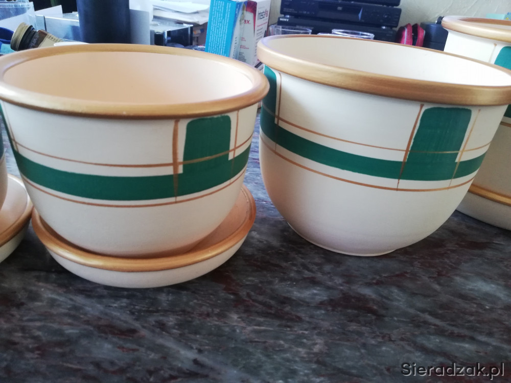 Mam do sprzedania komplet doniczek ceramicznych , praktycznie nie były używane, kolor dokładnie taki jak na zdjęciu. nieliczne, drobne ślady użytkowania na dwóch doniczkach i spodku. Jeden spodek niestety podczes przygotowań do zdjęć upadł i brakuje. Całość 140zł do negocjacji. Zapraszam do obejrzenia