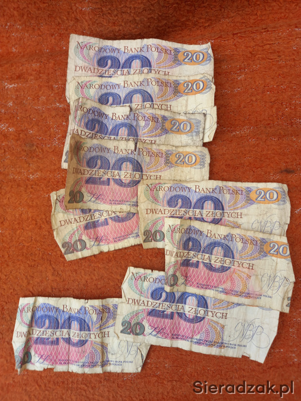 Sprzedam zestaw 20 banknotów 20 zł. Stan widoczny na zdjęciach. Możliwa też zamiana na papierosy z czasów PRL-u. Nie odpisuję na SMSy. Możliwa taż jest zamiana na stare płyty winylowe.