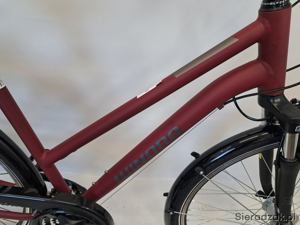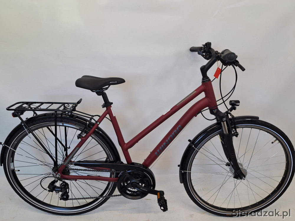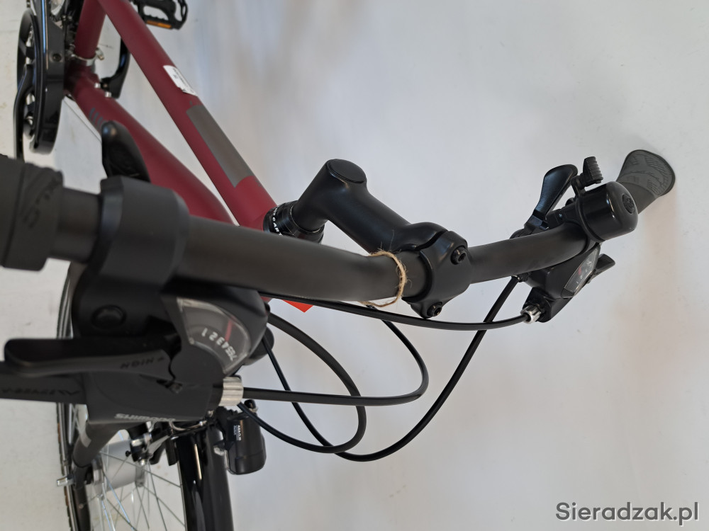 rama aluminium 20" 50cm,napęd 3x7,przerzutki shimano tourney tx,klamkomanetki shimano,hamulce v-brake promax,oświetlenie led axa,dynamo shimano w przednim kole,siodło selle royal wave,amortyzator sr suntour cr 8v,opony continental ride tour.