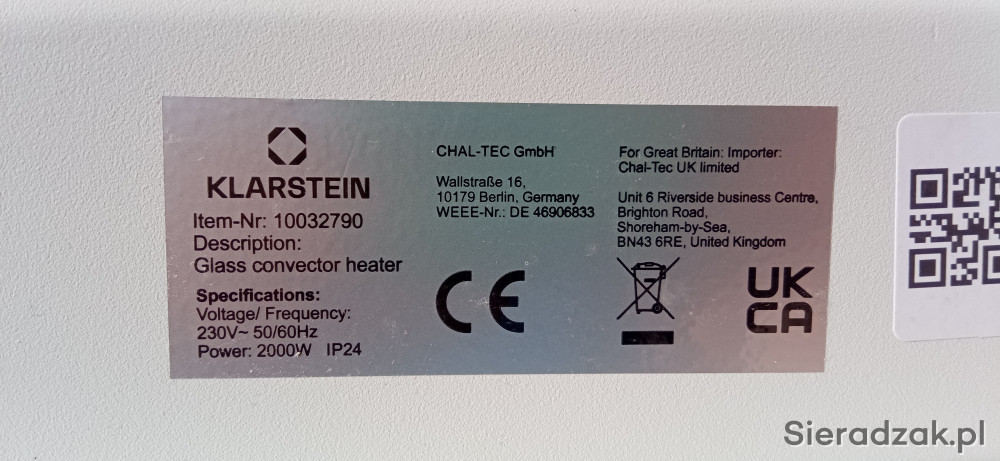 Sprzedam grzejnik konwektorowy Klarstein powystawowy sprawdzony pod kontem działania w pełni sprawny polecam. Brak pilota w zestawie. Sterowanie na urządzeniu.