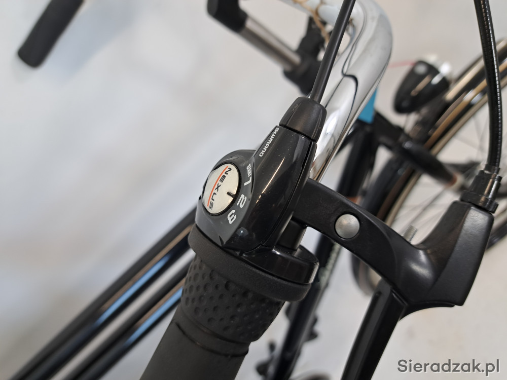 rama 24" 61cm,przerzutka shimano nexus 3-biegowa w tylnej piaście,piasta przednia sturmey x-fd z hamulcem bębnowym.na wyposażeniu: blokada tylnego koła,osłona łańcucha,osłony tylnego koła,dzwonek,bagażnik.