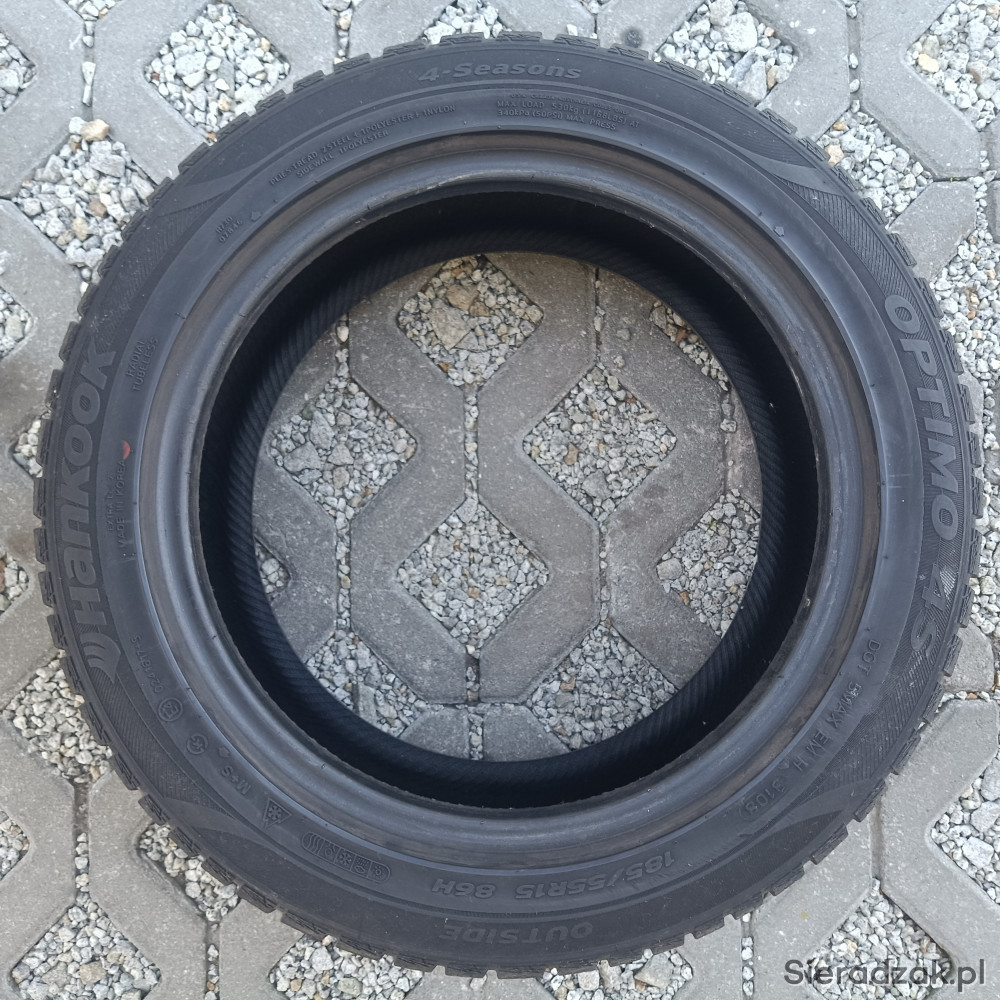 2x opony całoroczne wielosezonowe Hankook 185/55 R15 85H, DOT 3108, bieżnik 5,7mm. Opony w dobrym stanie jak na zdjęciach, bez uszkodzeń, sprawdzone ciśnieniowo.