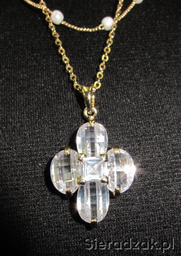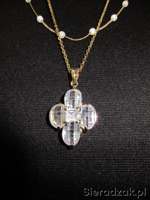 Przedmiotem ogłoszenia jest nowy wisiorek z małymi sztucznymi perełkami i przepięknie oszlifowanymi topazami.