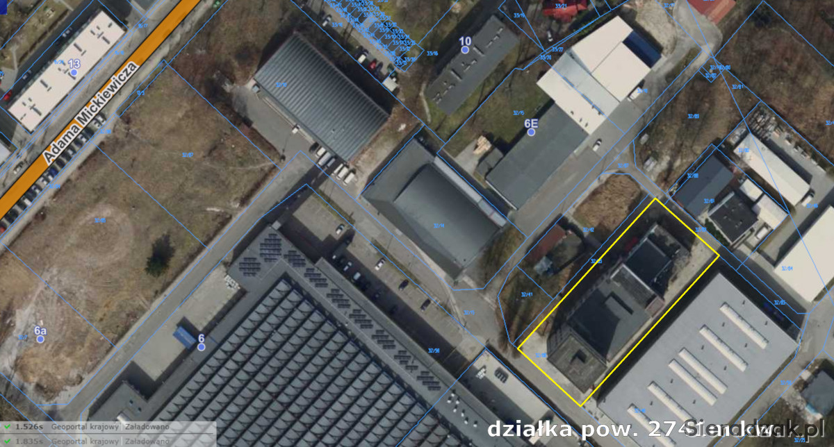 Budynek posadowiony jest na działce o pow. 2 741 m.kw.