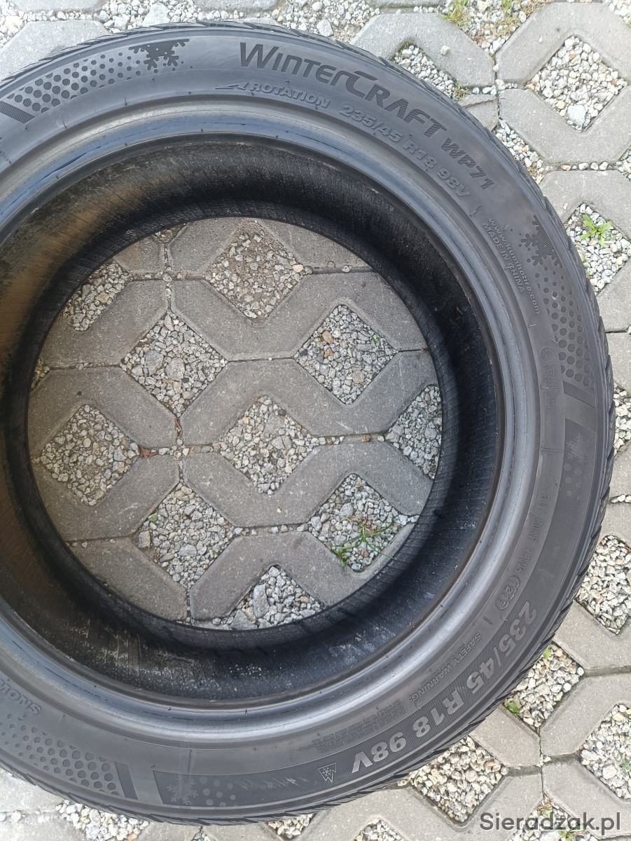 2x opony zimowe Kumho 235/45 R18 98V XL, DOT 1217, bieżnik 7,5mm. Opony posiadają rant ochronny felgi. Opony w bardzo dobrym stanie, sprawdzone ciśnieniowo.