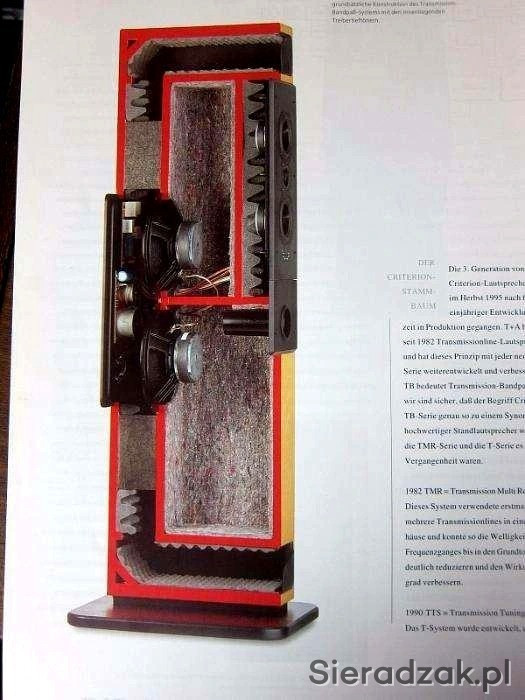 Połączono tutaj linię transmisyjną (wewnątrz 2 głośniki niskotonowe o średnicy 21 cm) z bass-refleksem (przód).