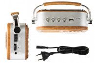 Radio odbiera w częstotliwościach AM i FM – pozwala odtwarzać muzykę z wybranej stacji radiowej. Radio zostało także wyposażone w obrotową antenę teleskopową oraz potencjometr regulacji głośności. Radio jest zasilane bateryjnie, sieciowo i akumulatorowe. Urządzenie ma oryginalny wygląd w stylu retro i wyposażone jest również w odbiornik Bluetooth, wejścia USB pendrive oraz microSD.