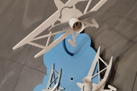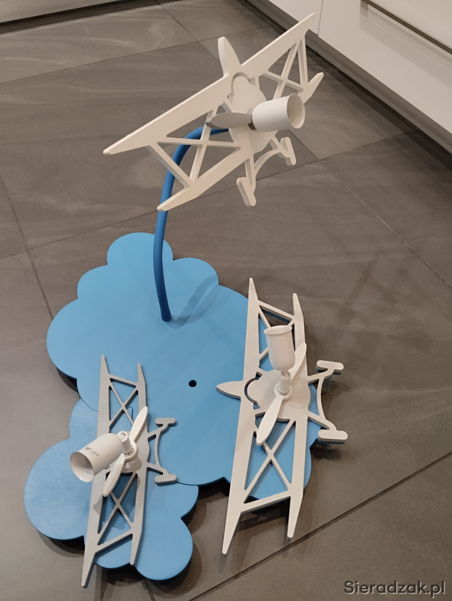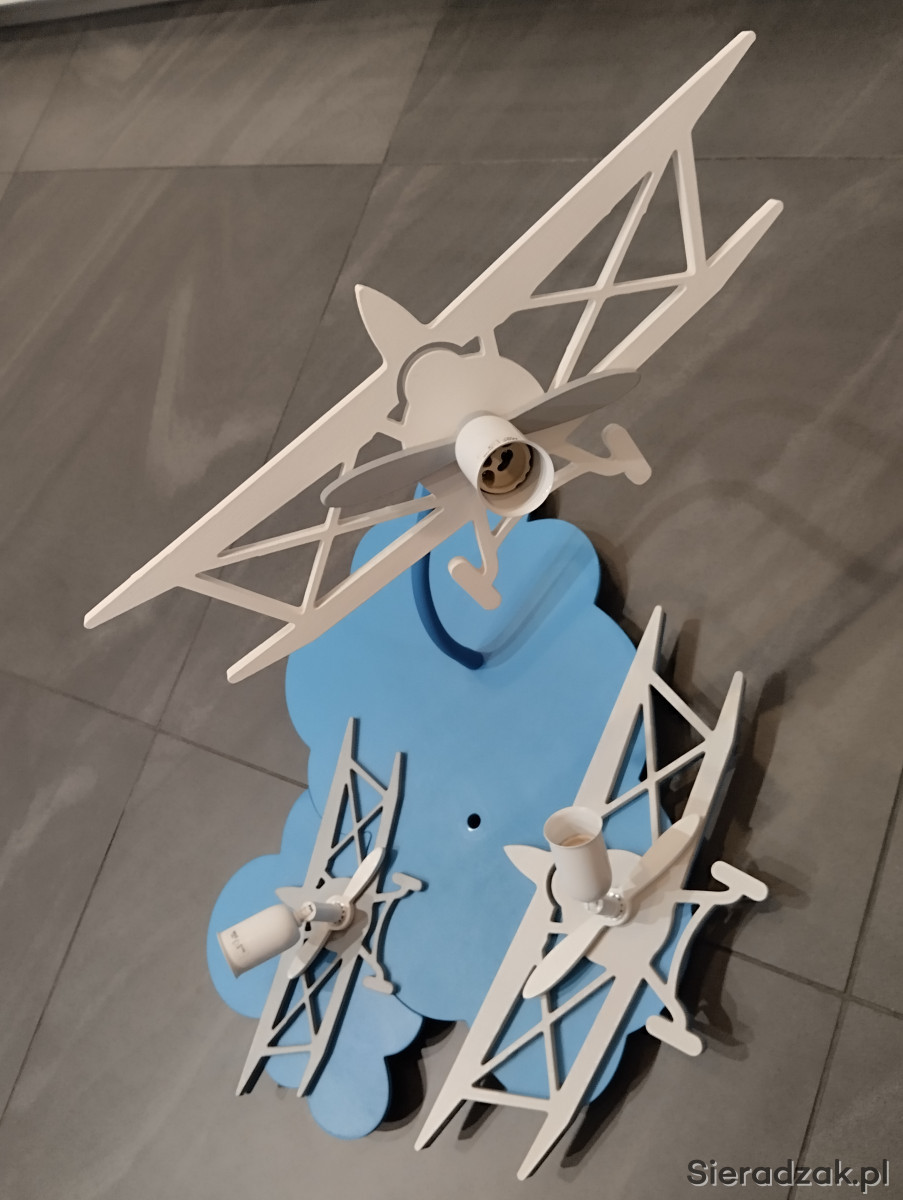 Witam mam do sprzedania bardzo ładna lampę do pokoju dla chłopca.Lampa w bardzo dobrym stanie,drewniana.Posiada element ruchomy.Bardzo ładnie się prezentuje na suficie.Lampa na trzy żarówki.Polecam