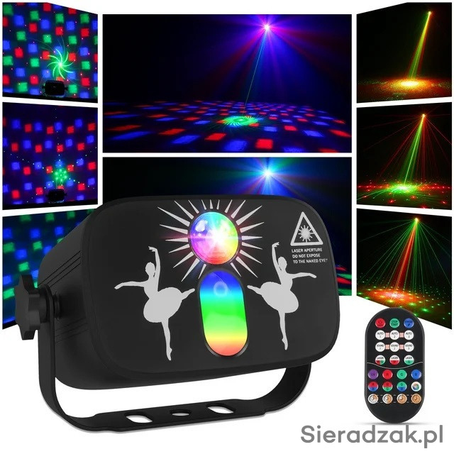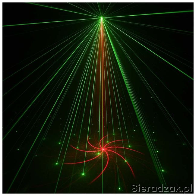 Efekt ze strumieniami kolorów RGB MIX i laserem red i grenn wzory. Dzięki temu posiada duże możliwości pracy w każdych warunkach. Każdy użytkownik będzie z pewnością zadowolony mając możliwość użycia wszystkich efektów na każdej imprezie.