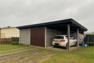 W bryle domu znajduje się garaż, a poza tym na terenie posesji umiejscowiony jest drugi garaż z wiatą.