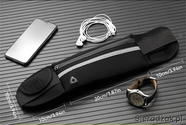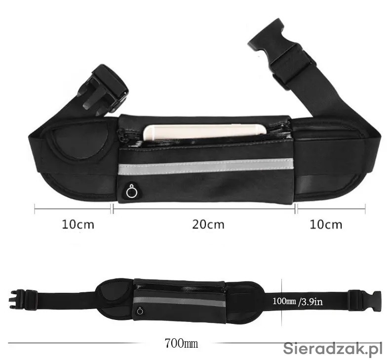 Po za tym pas posiada kieszeń na butelkę i drugą zapinaną na rzep na różne osobiste drobiazgi i gadżety.