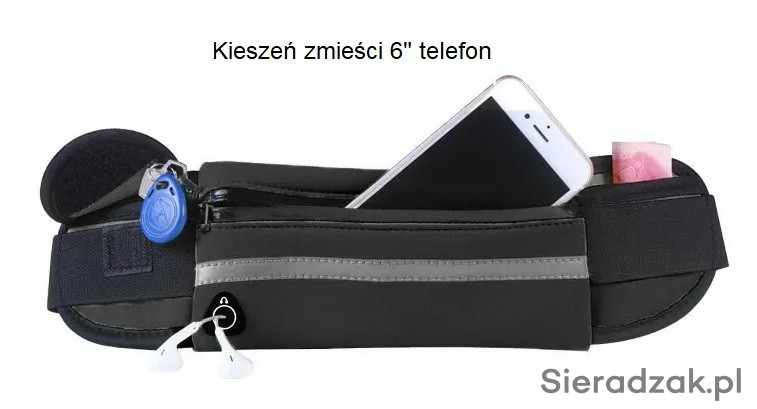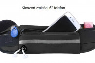 Pas posiada specjalny otwór do słuchawek, a kieszeń zmieści telefon do 6 cali.