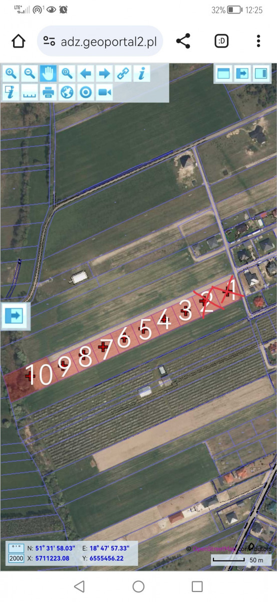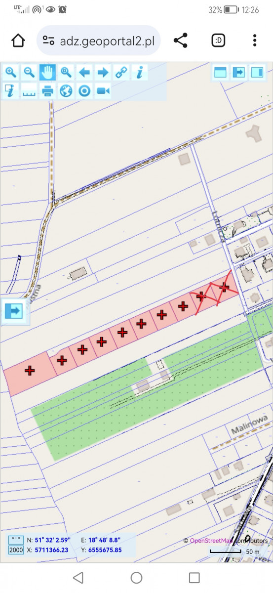 Powierzchnia jednej działki to 13 arów plus droga wewnętrzna o szerokości 8m.