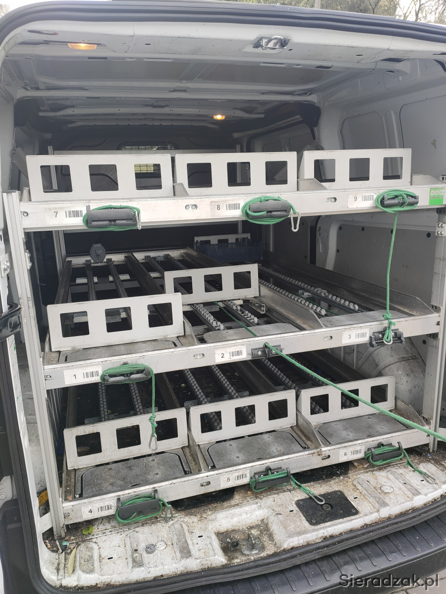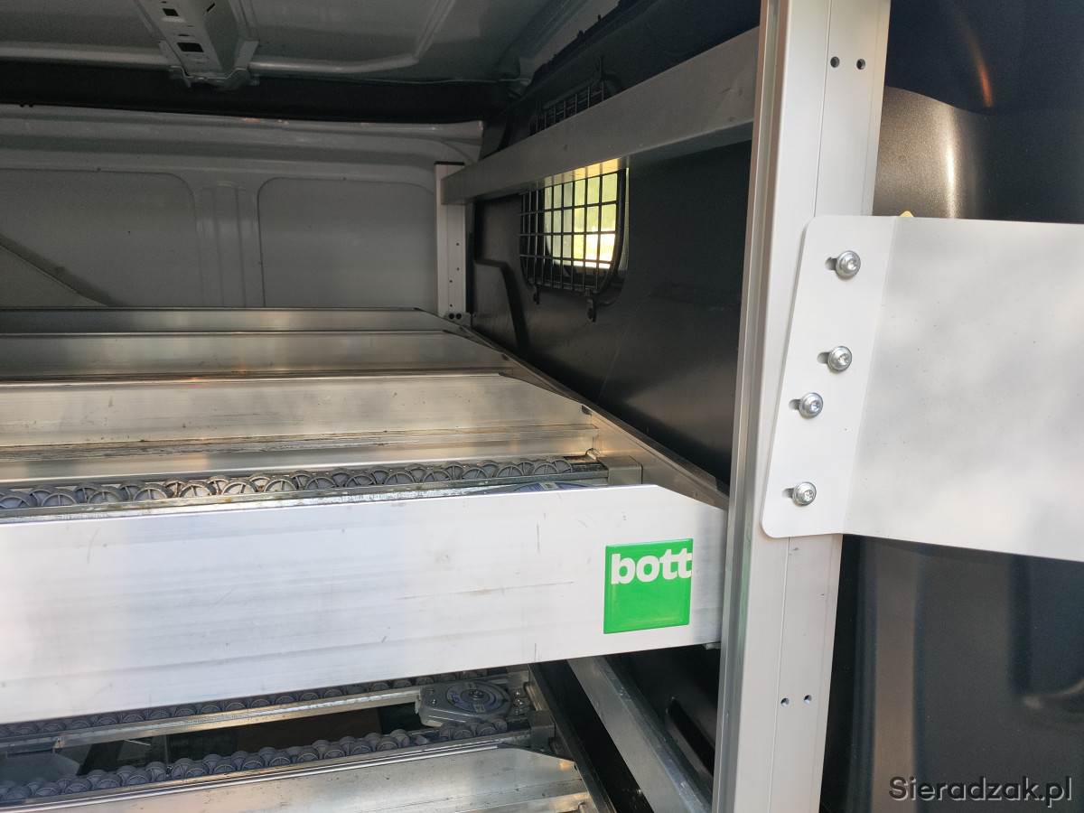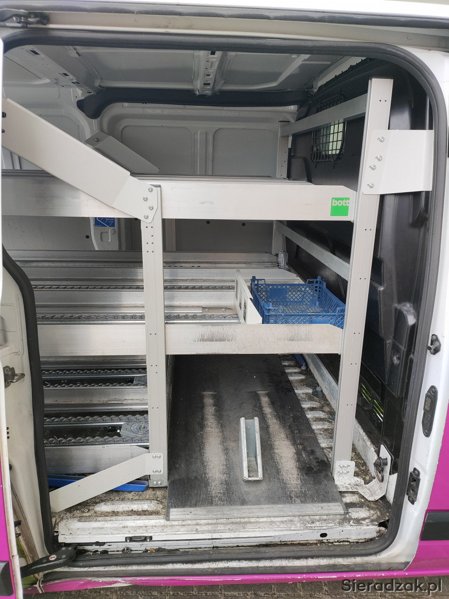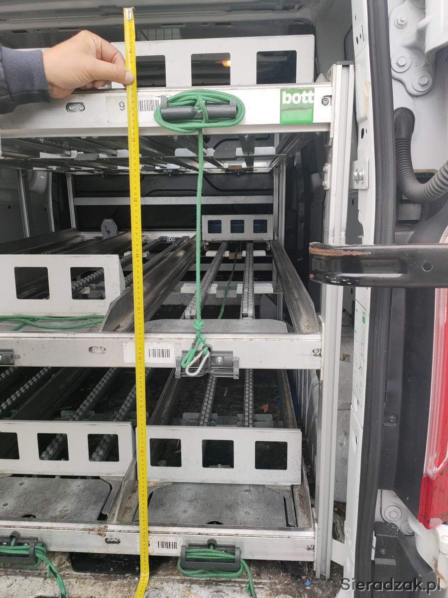 Używana zabudowa, regały przesuwane, półki renomowanej firmy BOTT do samochodów dostawczych.