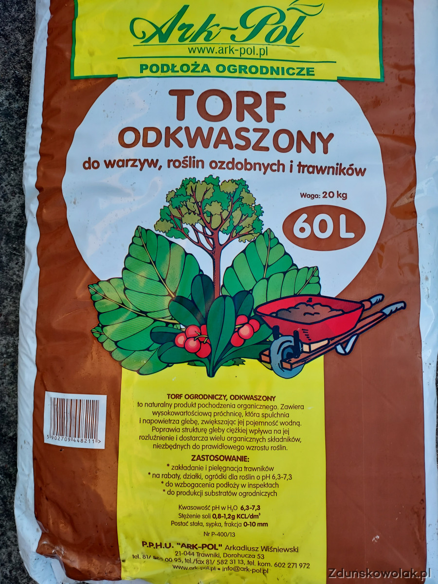 Podloza ogrodnicze w opakowaniach 10--20- 50--60,,80 i 250-litrow .Wiekszosc podlozy 50 lub 60l po 16zlWyjatek stanowią ziemia do wysiewu i pikowania,torf kwasny podloze do pelargonii oraz podloze do rozanecznikow.W sprzedazy nawozy plynne,posypowe,rozpuszczalne oraz wapno granulowane magnezowe. Nawoz do trawnika antymech 25kg 105 zl,nawoz ogrodniczy do warzyw i drzew owocowych 25kg 100zl wapno ogrodnicze granulowane magnezowe 40 kg 25zl Nawozy dostepne rowniez w opakowaniach 1,2,5 i 10 kilogramow Czynne codziennie w godz. 8-18 sobota 8-16.Zdunska Wola ul.Grabowa 8.Zapraszamy
