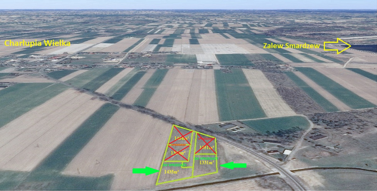Do sprzedaży działka budowlana o powierzchni 1331 m² w Charłupi Wielkiej, gmina Wróblew niedaleko Sieradza.