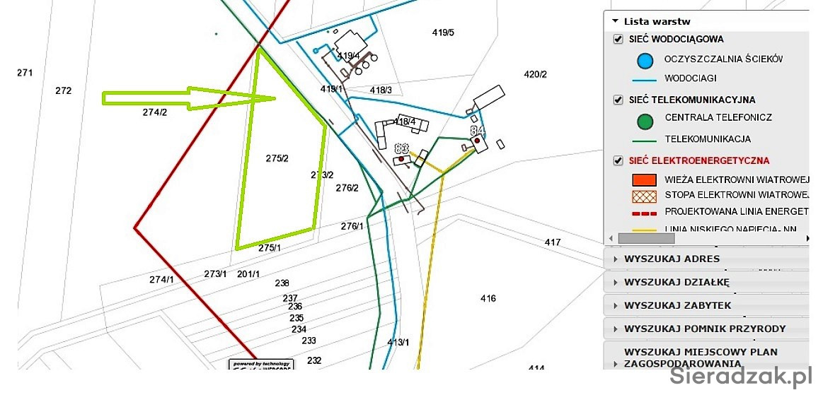 Wydane warunki zabudowy, w trakcie podłączenia do sieci wodociągowej i elektrycznej. Sieci są położone przy drodze dojazdowej